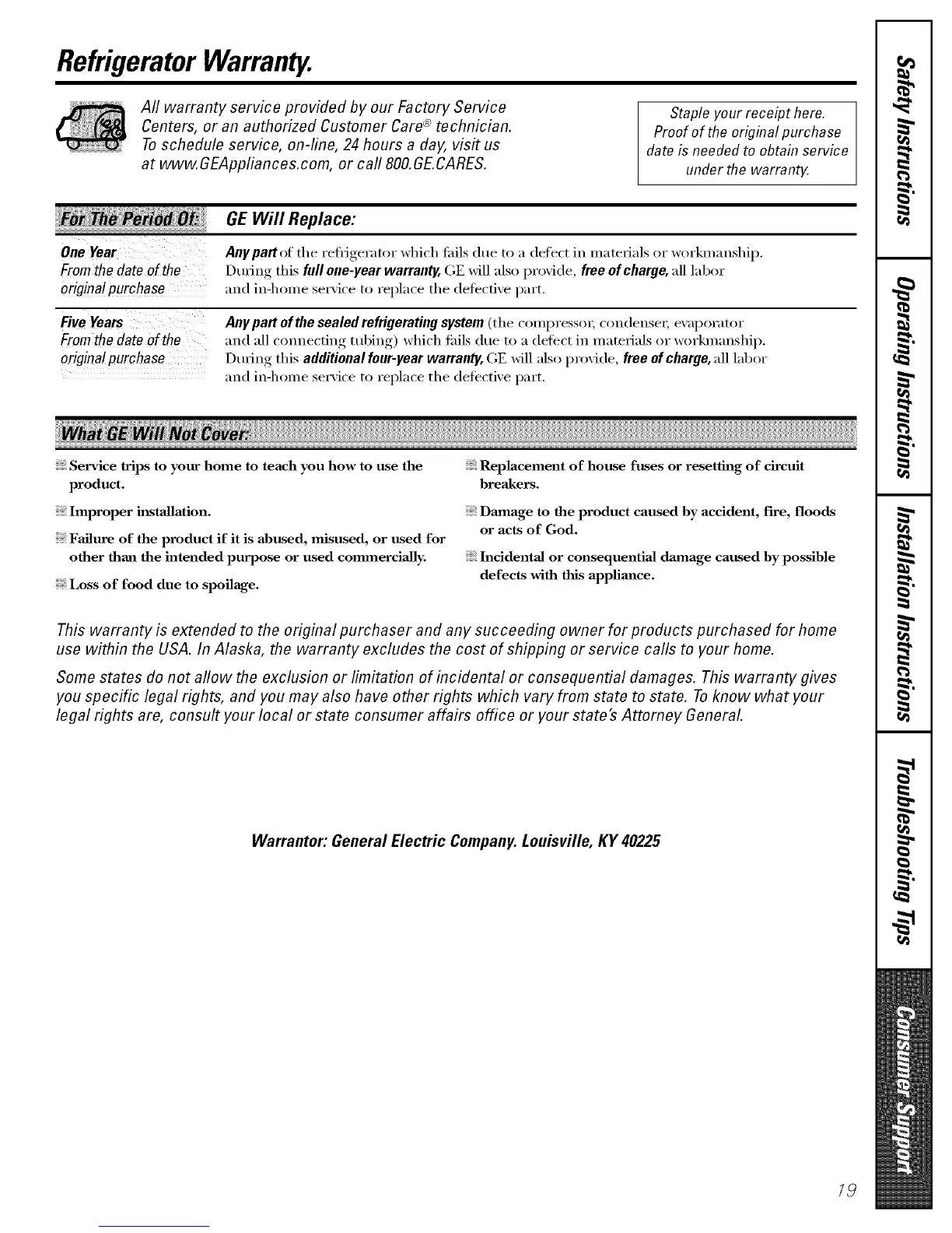 Warrantor: General Electric Company. Louisville, KY 40225
