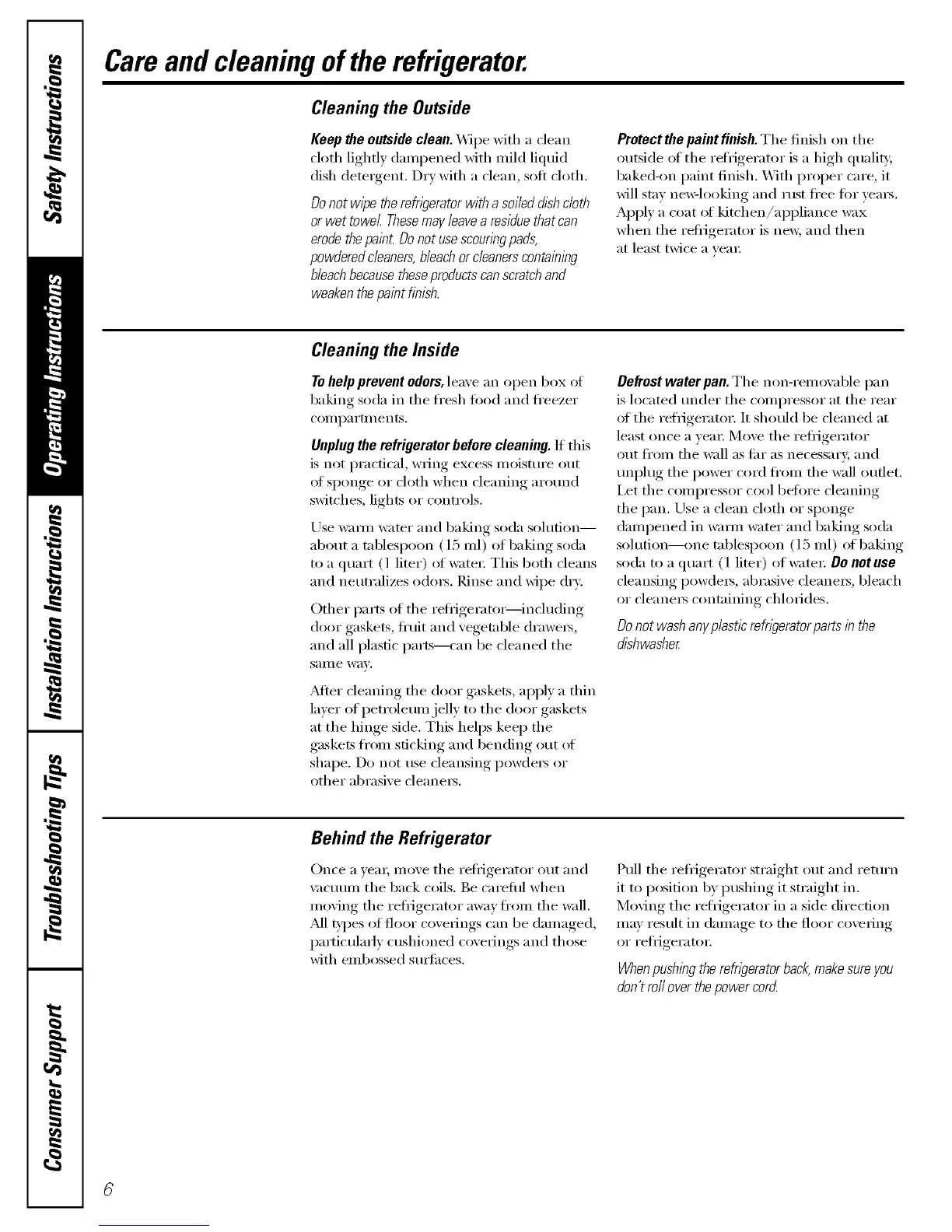 Careand cleaning of the refrigerator.