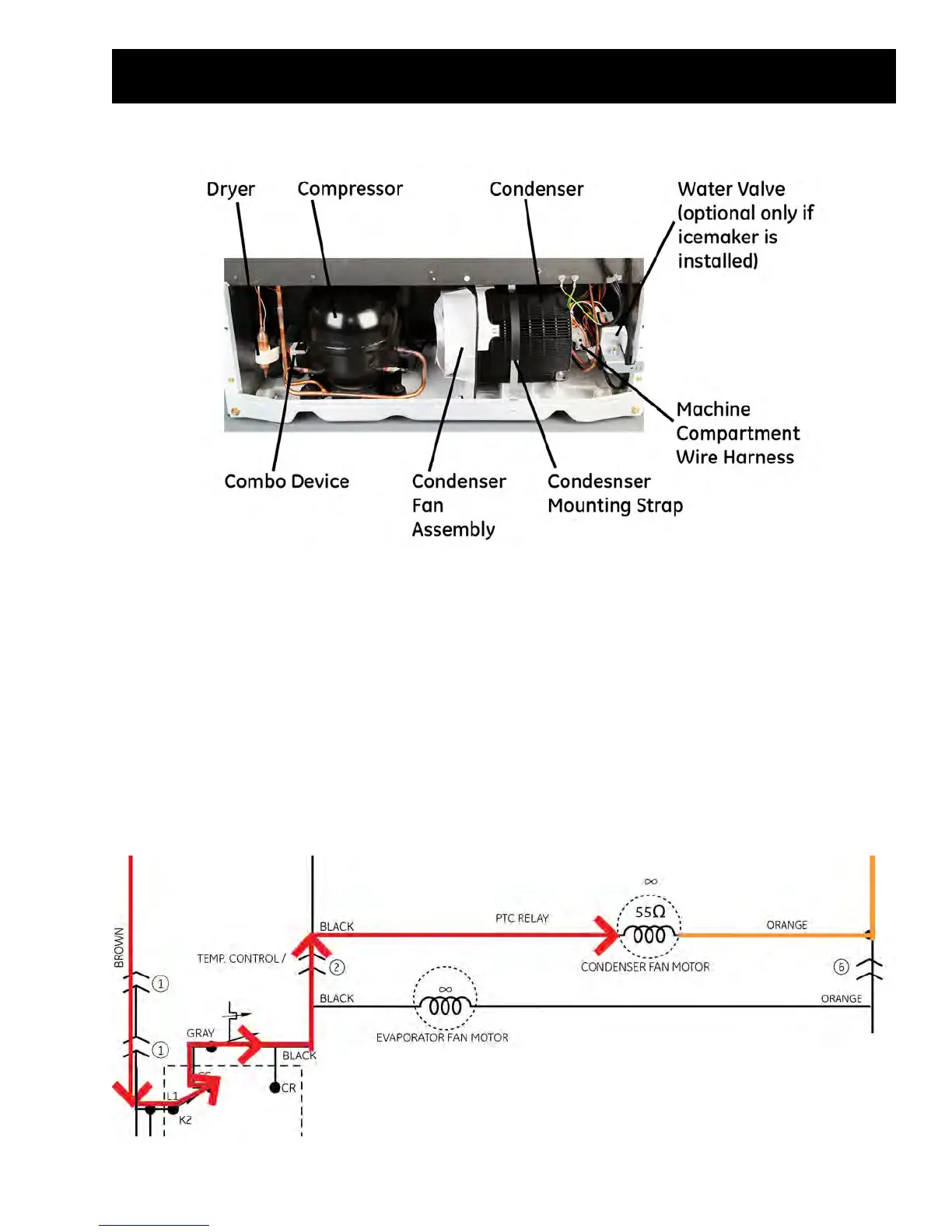 The condenser fan motor is connected electrically in parallel with the compressor. When the cold control