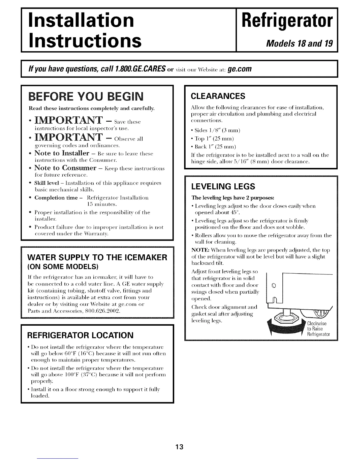 ffyou have questions,call 1.800.GE.CARESor ,isit ore" Website at: ge.com I
