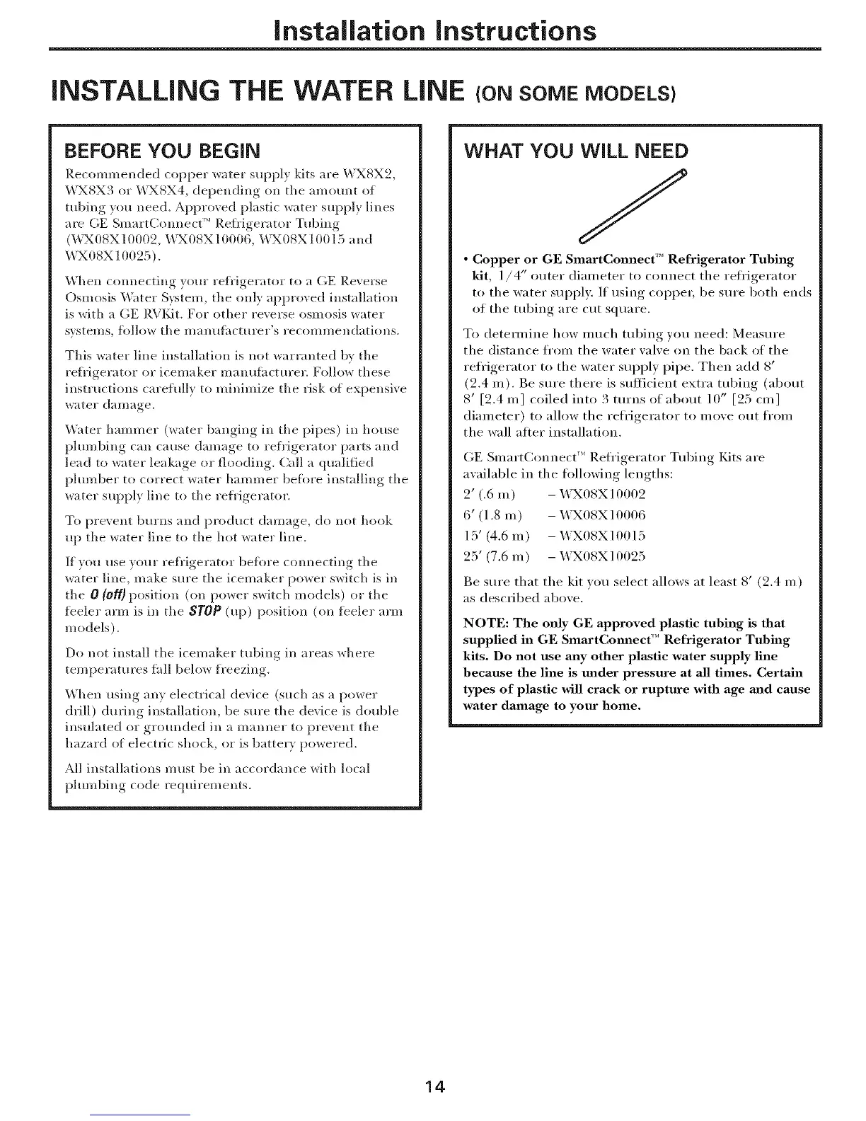 supplied in GE SmartCmmec( _"Refrigerator Tubing