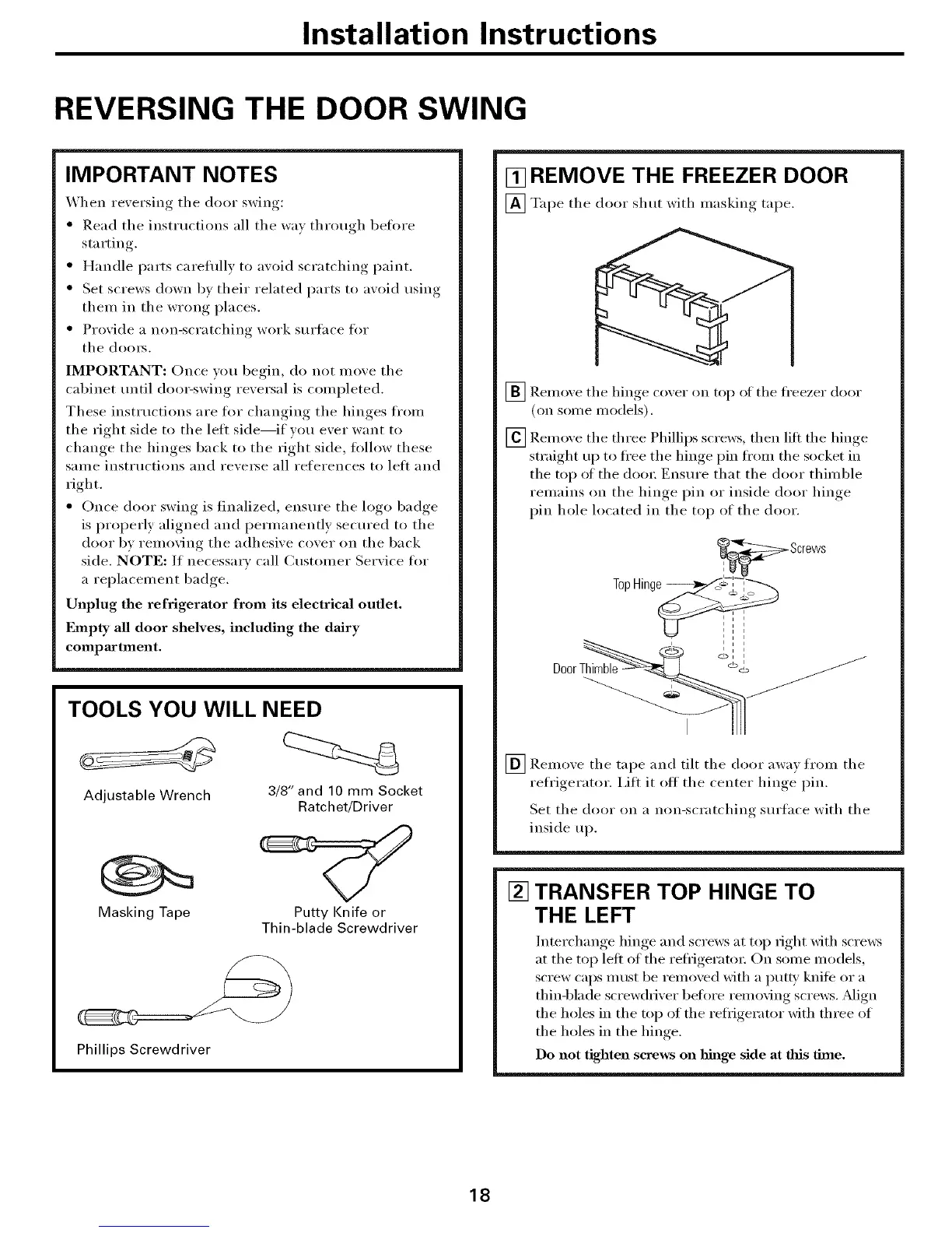 These inst_ uctions are fin" changing the hinges fi'om