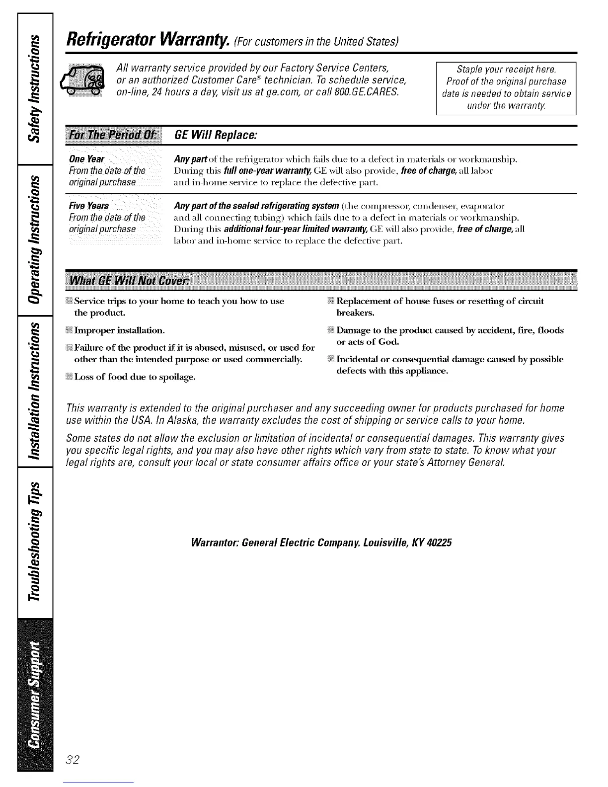 Warrantor: General Electric Company. Louisville, KY 40225