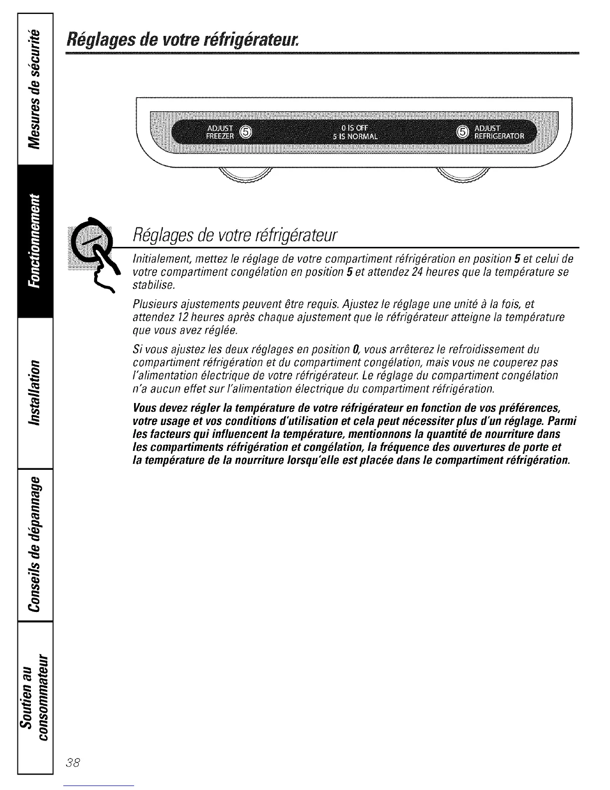 attendez 12heures apr#s chaque ajustement que le r#frig#rateur atteigne la temp#rature