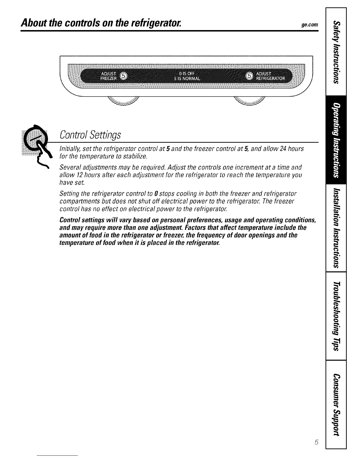 Initially, set the refrigerator control at 5 and the freezer control at 5, and aflow 24 hours