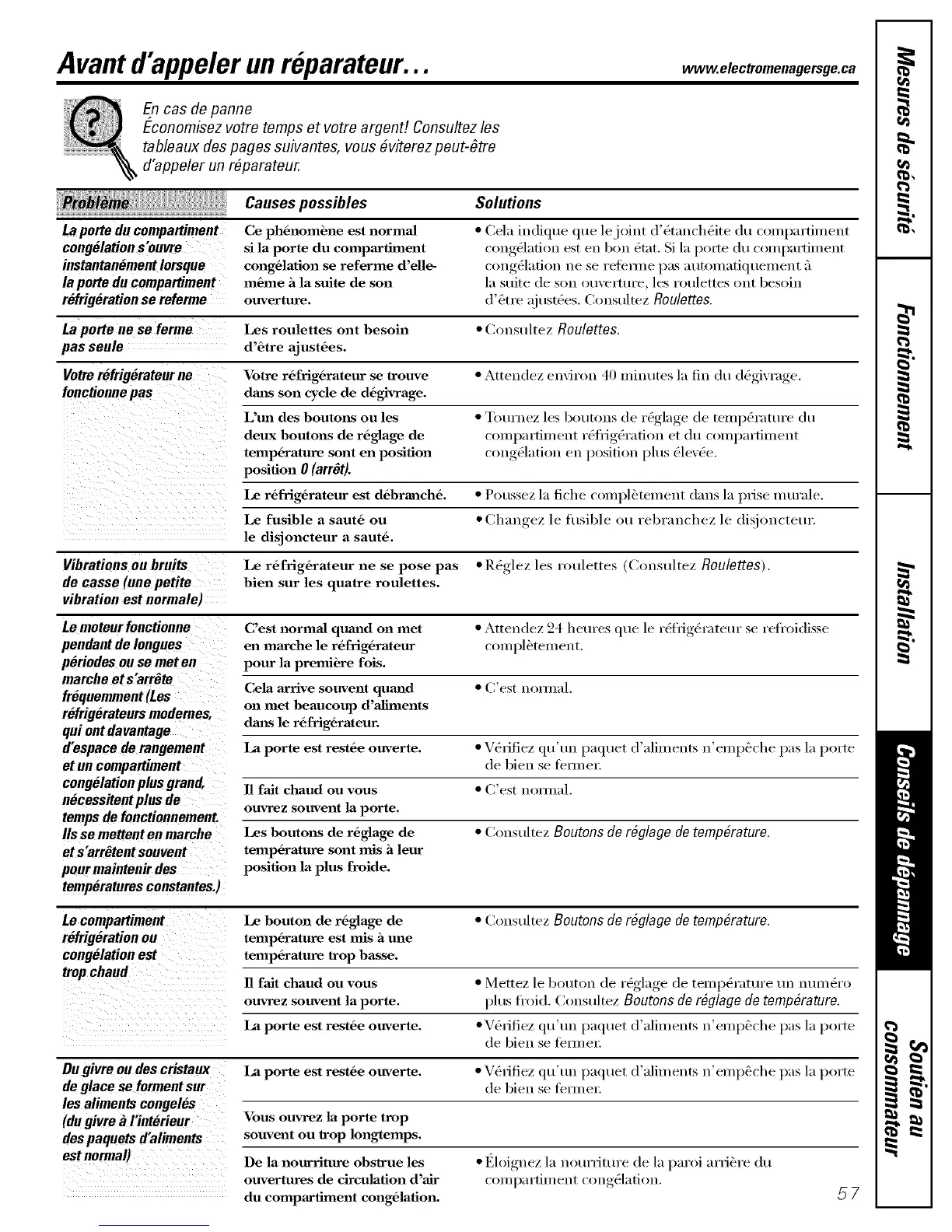 Du givre ou des cristaux La porte est rest6e ouverte. * V6rifiez qu'un paquet (Faliments n'emp_che pas la porte