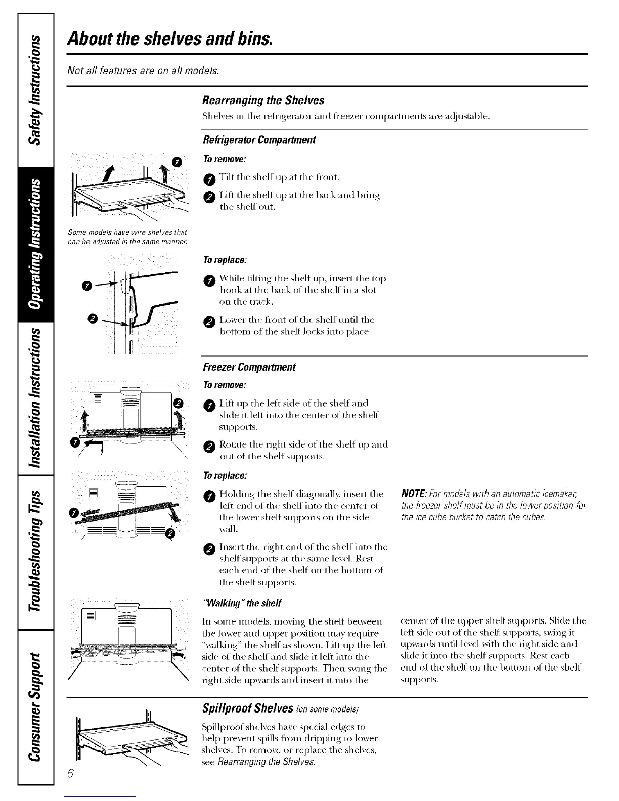 Shelves in the refi'igerator and fi'eezer compartments are a(!iustable.