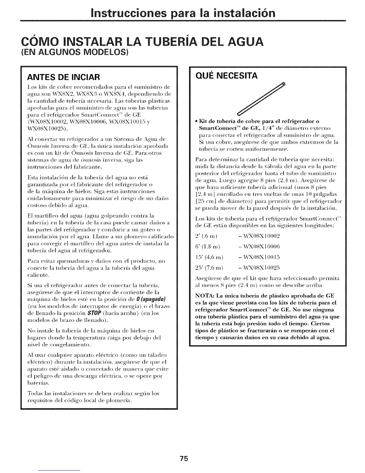 I,os kits de tuberfa para el refl'igerador SmartConnect _'_