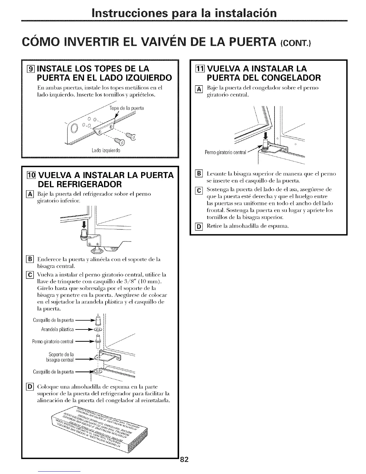 alineaci6n de la puerta del congelador al reinsmlarla.