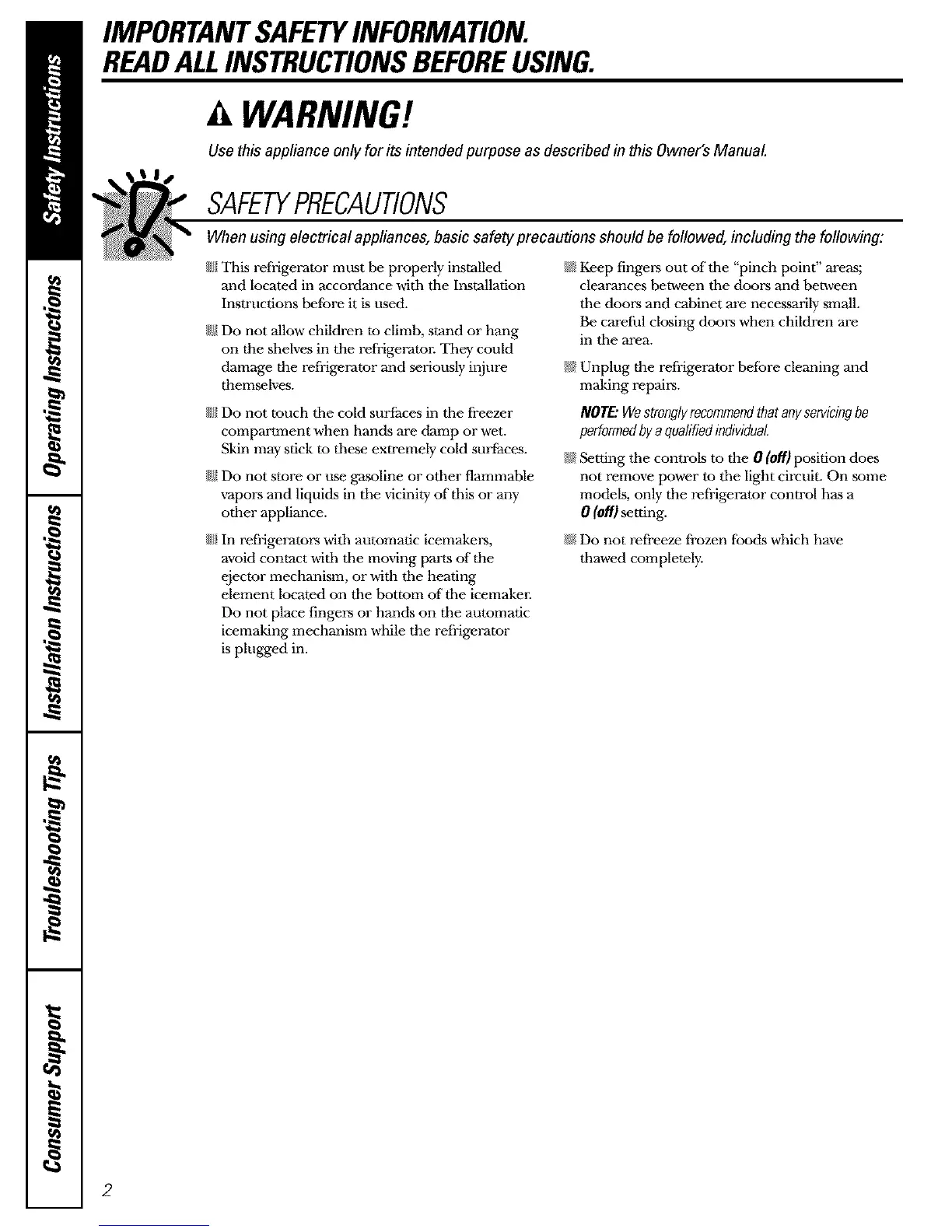 { This refrigerator must be properly installed