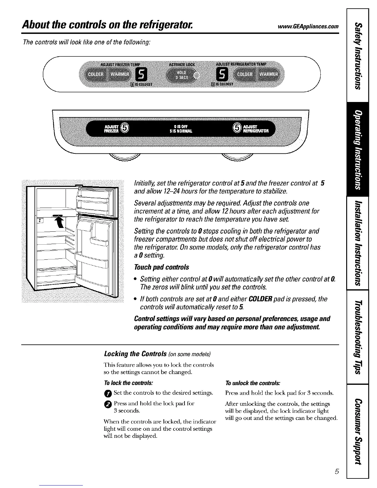 About the controlson the refrigerator, ww .GEAppliances.com