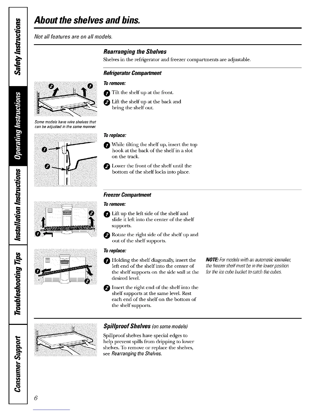shelves. To remove or replace tbe shelves,
