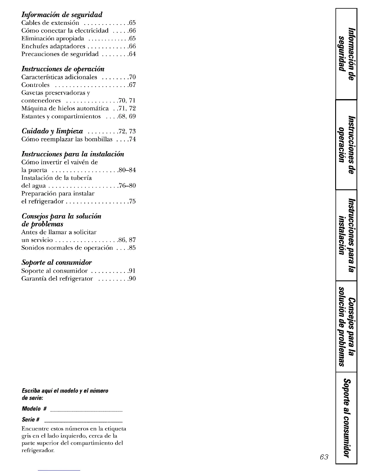 Soporte al consumidor ........... 91