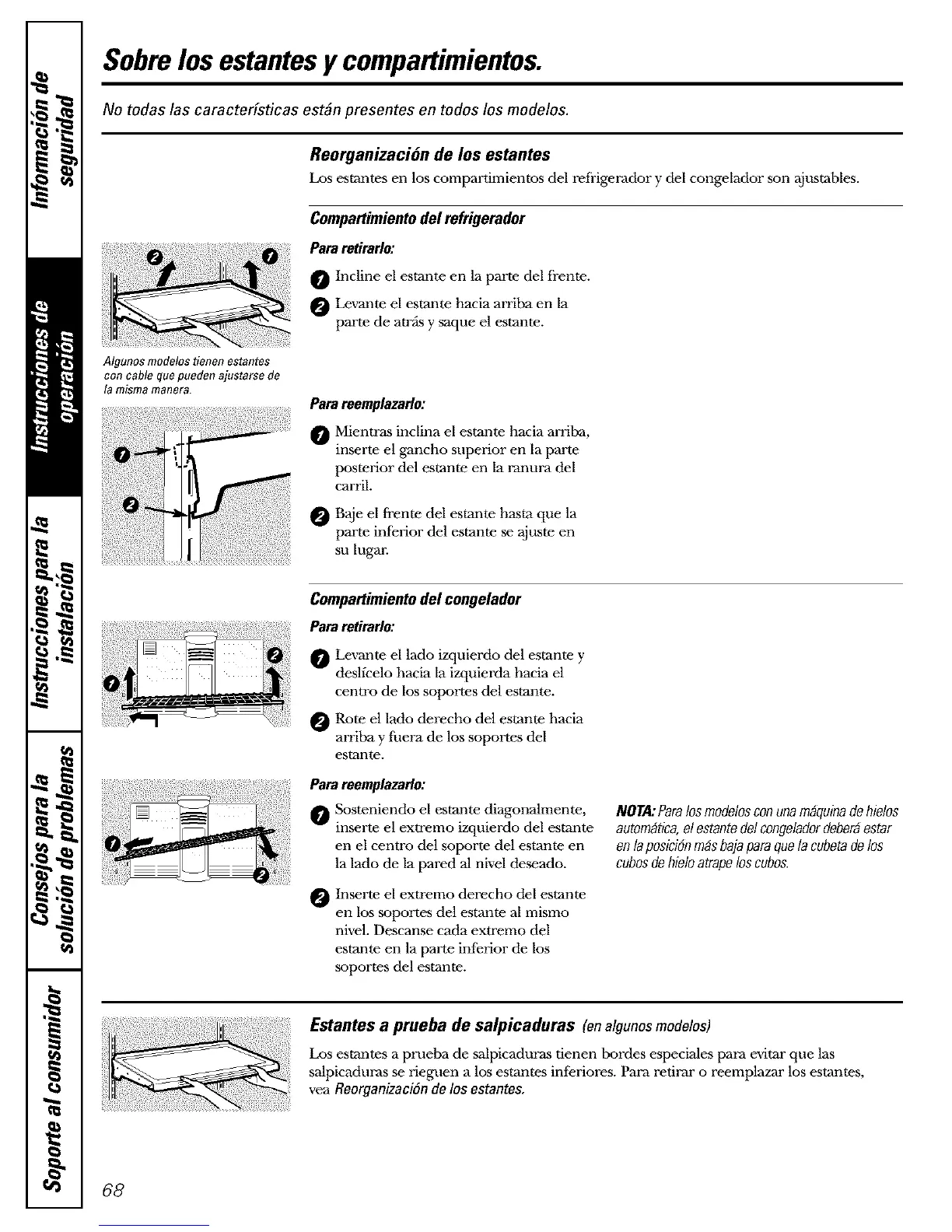 salpicaduras se rieguen a los estantes inferiores. Para retirar o reemplazar los estantes,