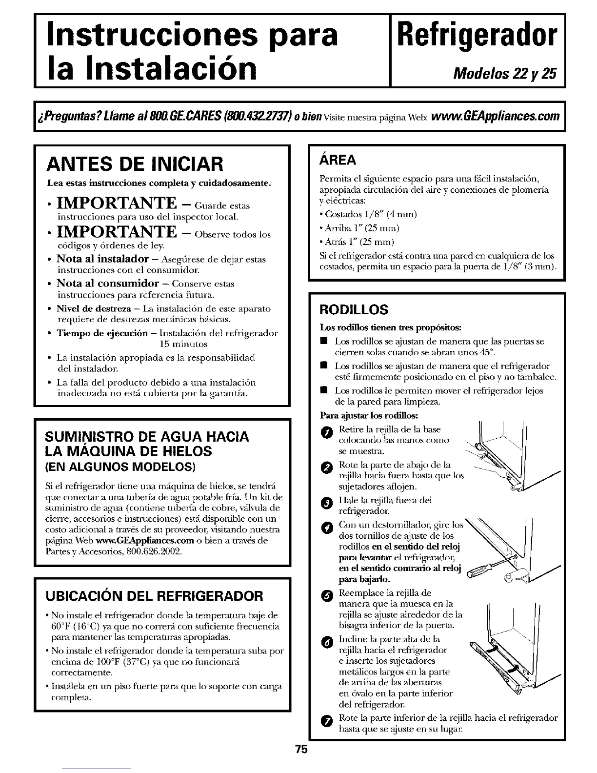 l iPreguntas? Llame al 8M. GE.CARES(800.432.2737)obienWsit_nues.'_p_iginaWeb:vv_.GEAppliances.com I