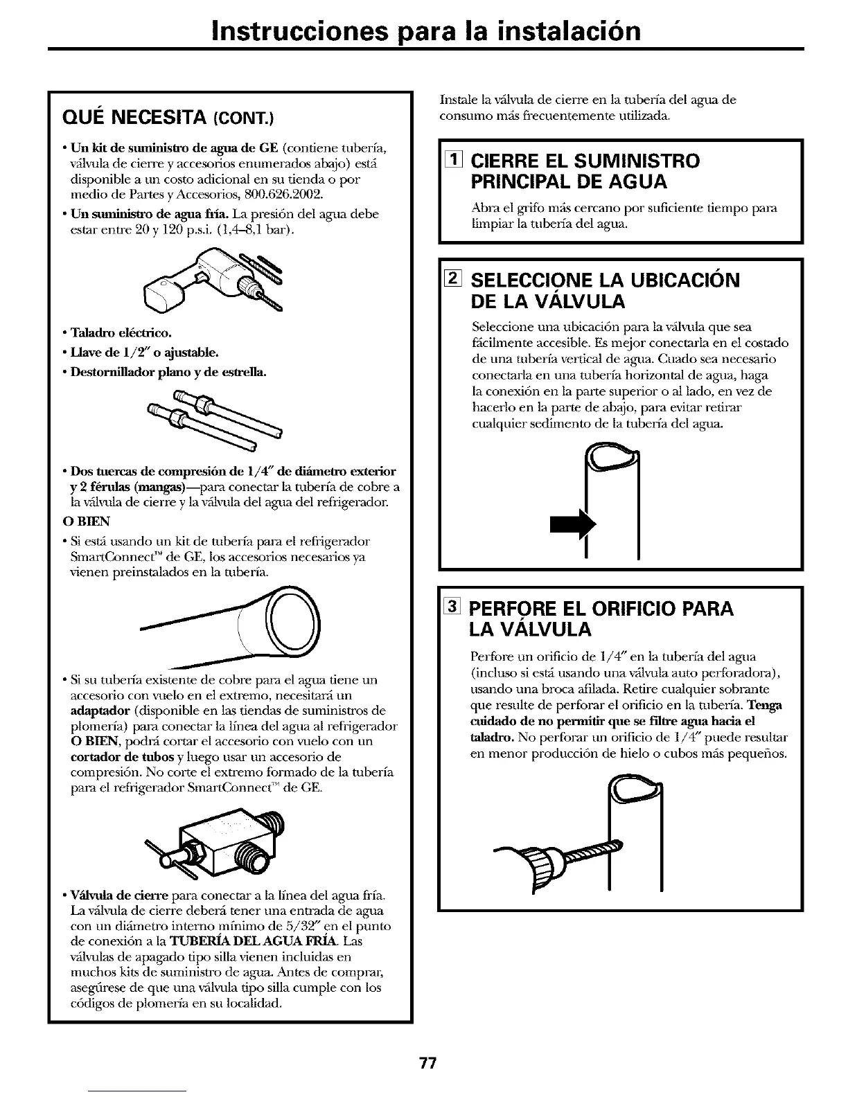• Un kit de suminlstro de agua de GE (contiene tuberfa,