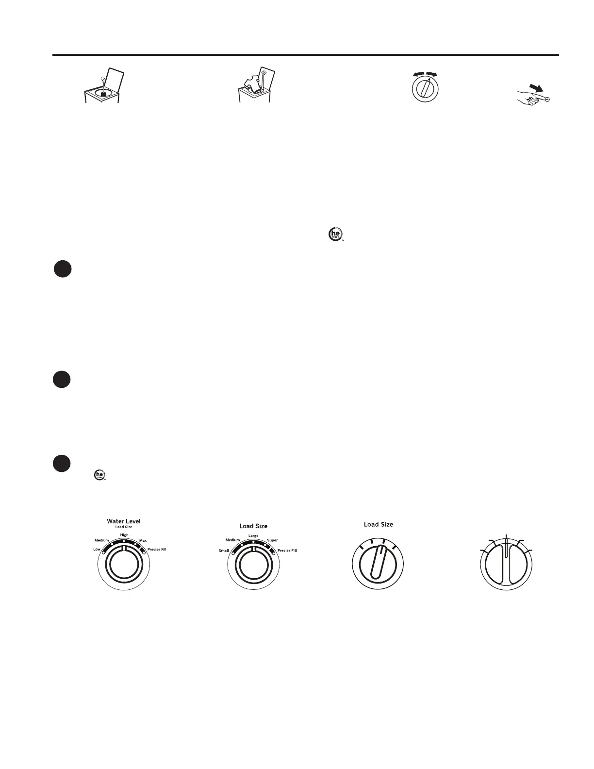 – If you prefer to manually select the water level, select Low/Small through Max/Super (or Large on some models). While Precise Fill/