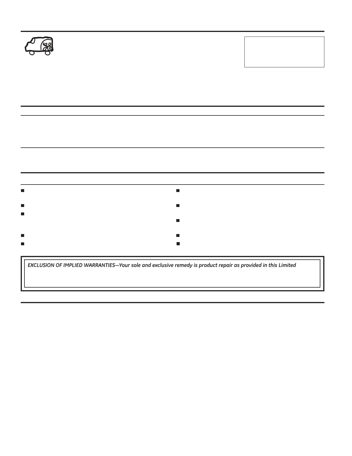 home use within Canada. If the product is located in an area where service by a GE Authorized Servicer is not available,