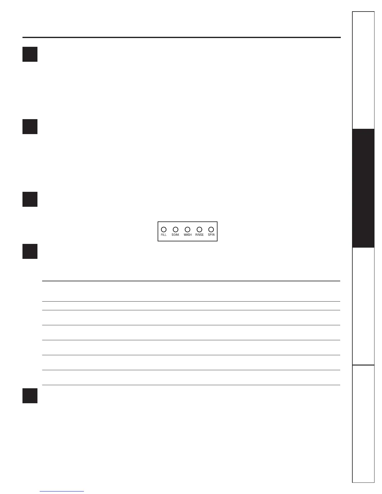 las luces indicadoras destellarán momentáneamente, indicando qué etapas efectuará el ciclo. En los modelos sin la opción AUTO SOAK (REMOJO