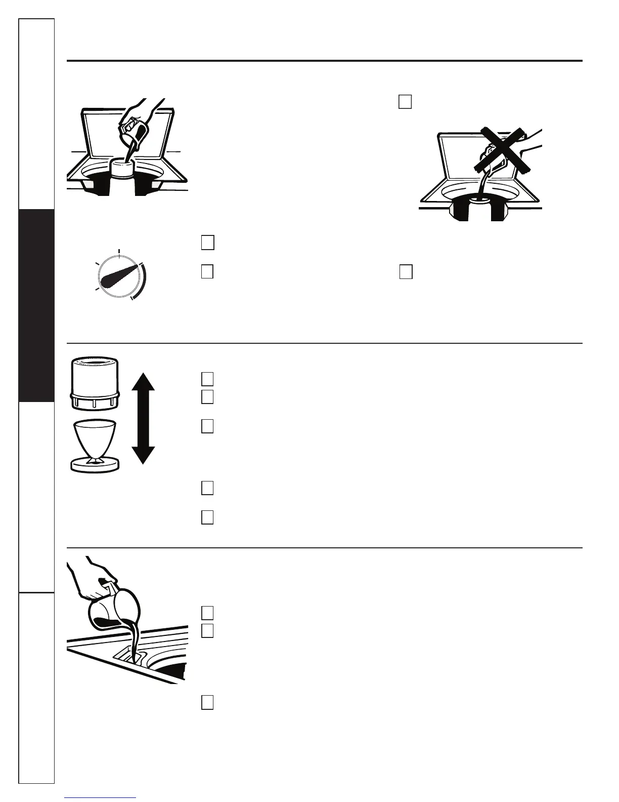 en el embudo. Evite salpicar o llenar el dosificador en exceso. Si prefiere usar blanqueador
