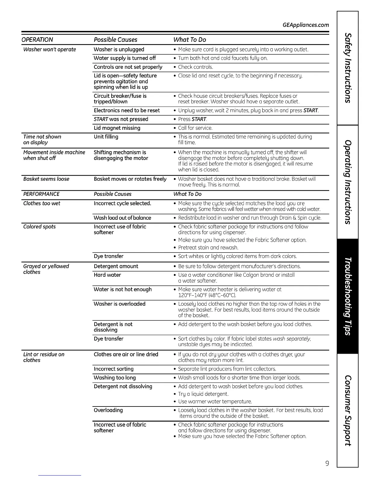Washer won't operate Washer is unplugged • Hake sure cord is plugged securely into o working outlet.