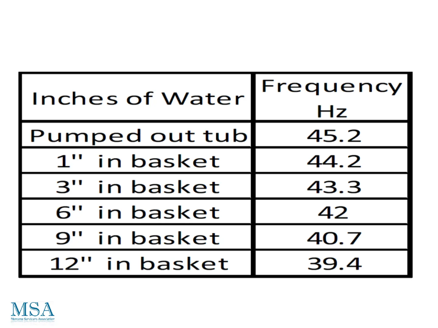 Tub Water Level / Hz conversion