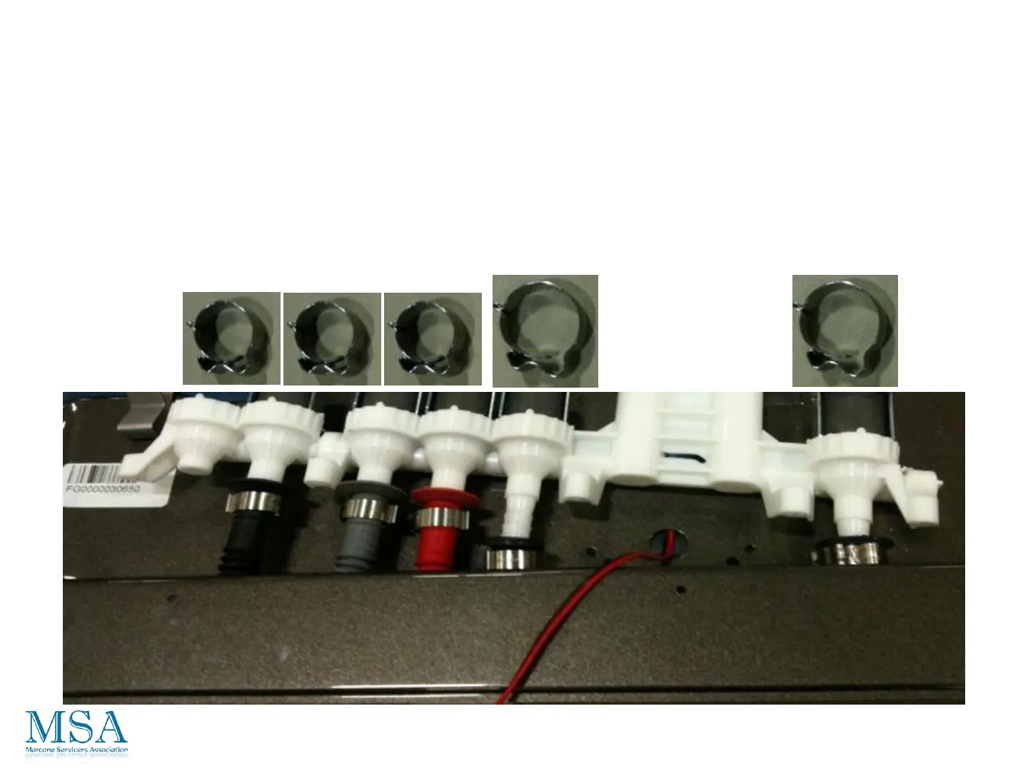 clamps and attach the tubes to the water valve barbed stems.