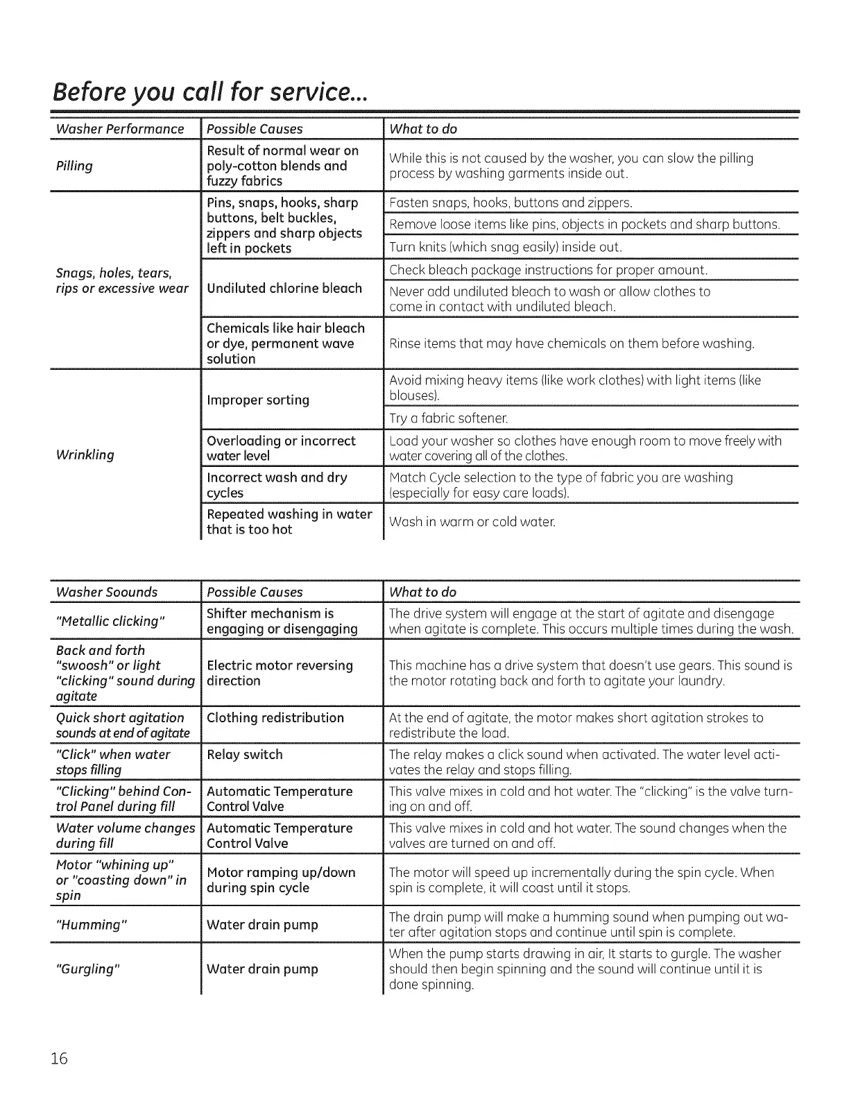 "Metallic clicking" Shifter mechanism is The drive system will engage at the start of agitate and disengage