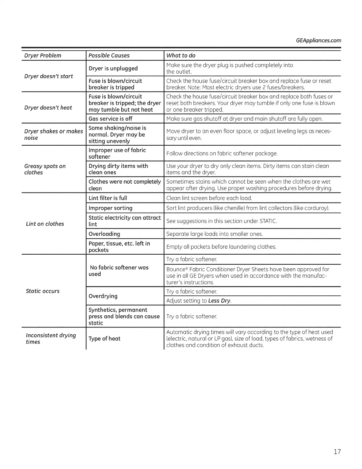 Dryer Problem Passible Causes