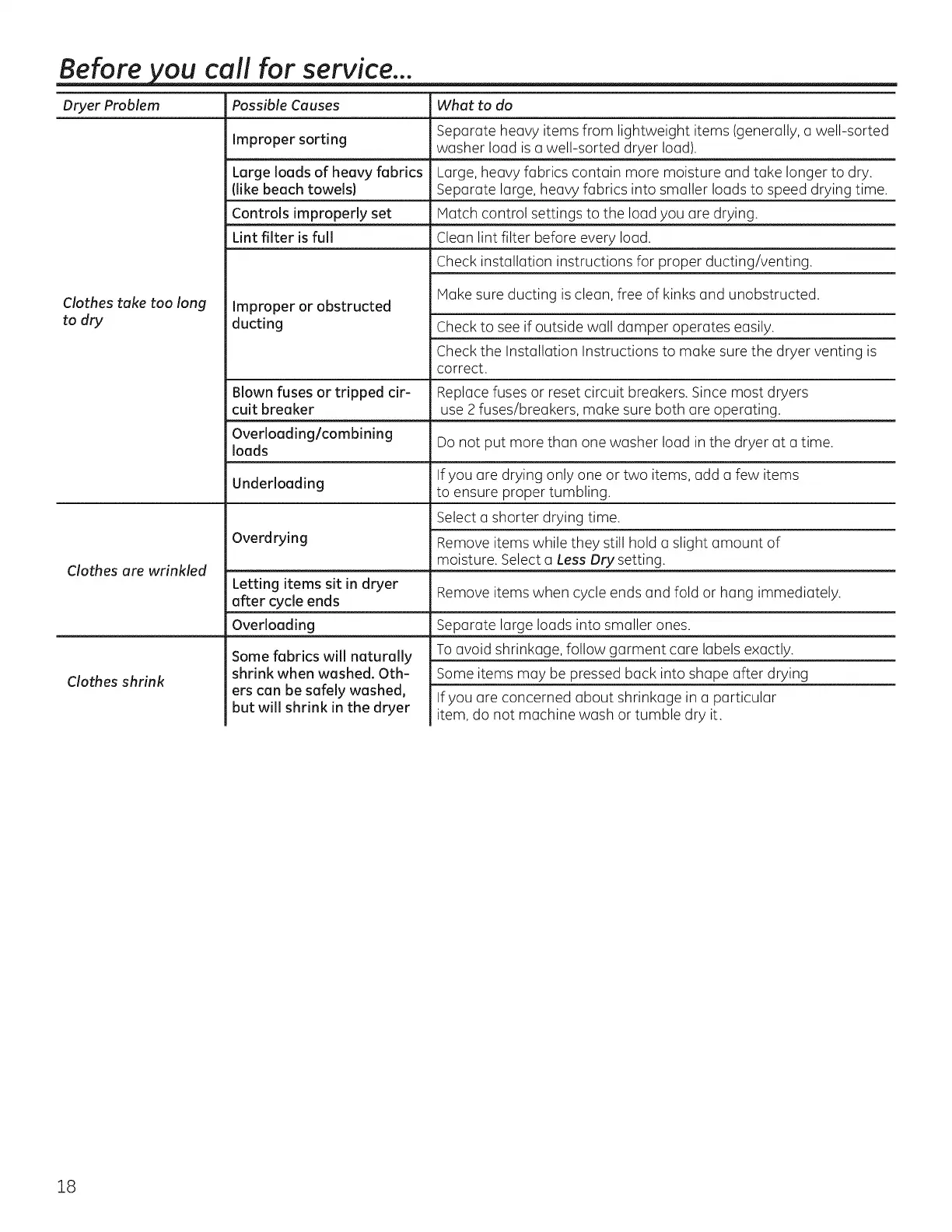 Dryer Problem Possible Causes