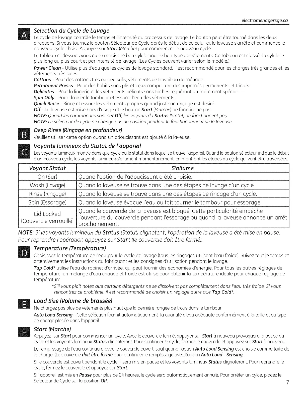 cycle et lesvoyants lumineux Status clignoteront. Pour continuer le cycle,fermez le couvercle et appuyez surStart 6 nouveau.