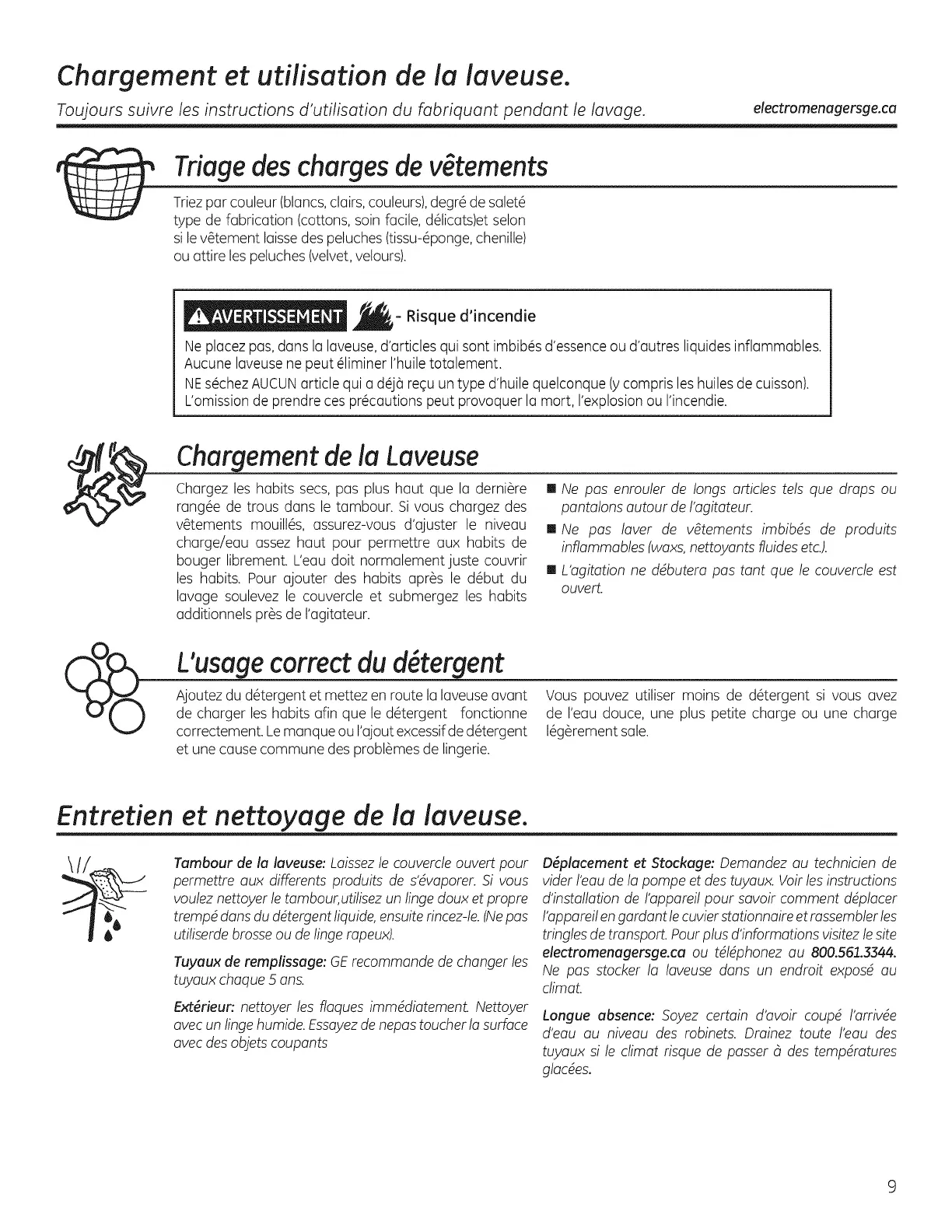 Toujours suivre les instructions d'utilisation du fabriquant pendant le lavage, electromenagersge.ca