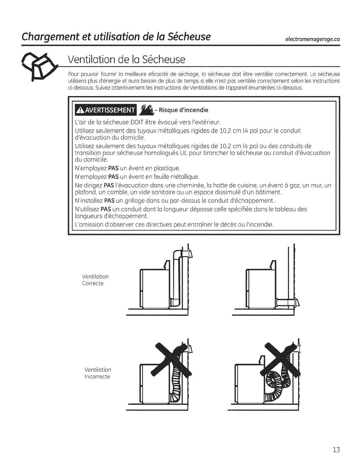 utilisera plus d'Tnergie et aura besoinde plus de temps si elle n'est pas ventil@ecorrectement selon les instructions