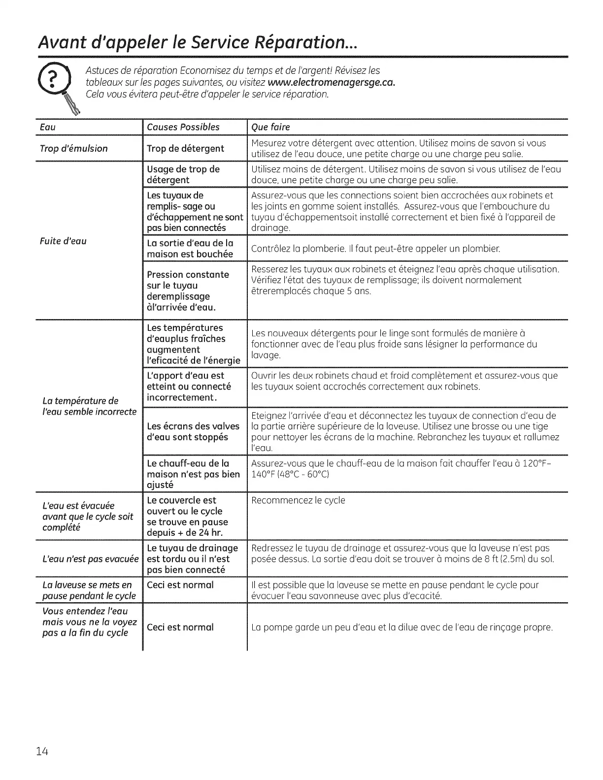 tableaux sur les pages suivantes, ou visitez www.electromenagersge.ca.