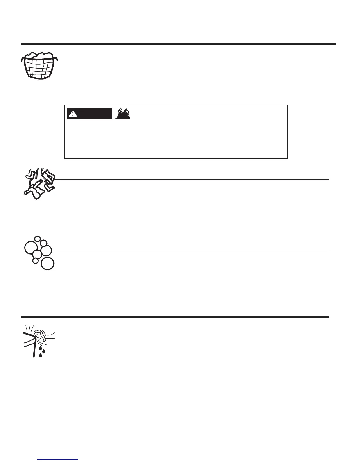 Never place items in the washer that are dampened with gasoline or other flammable liquids.