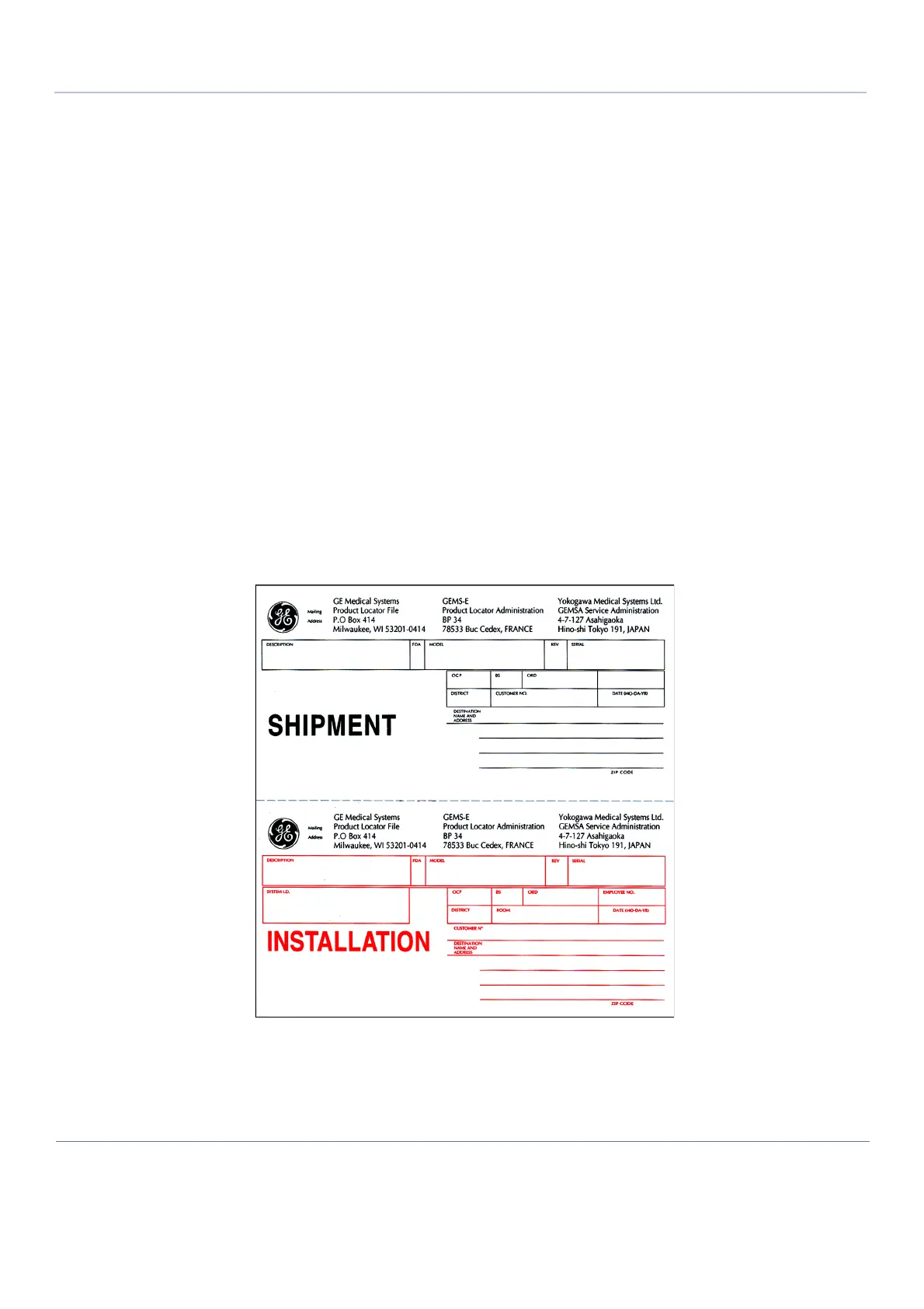 From the factory, a sheet with five Product Locator cards for transportation and one for Installation are