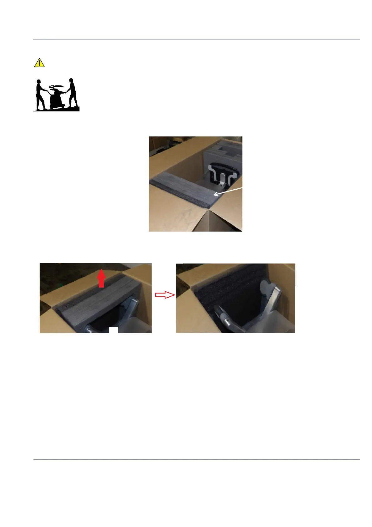 Two people are required whenever a part weighing 16 KG (35 LBS) or more must be lifted