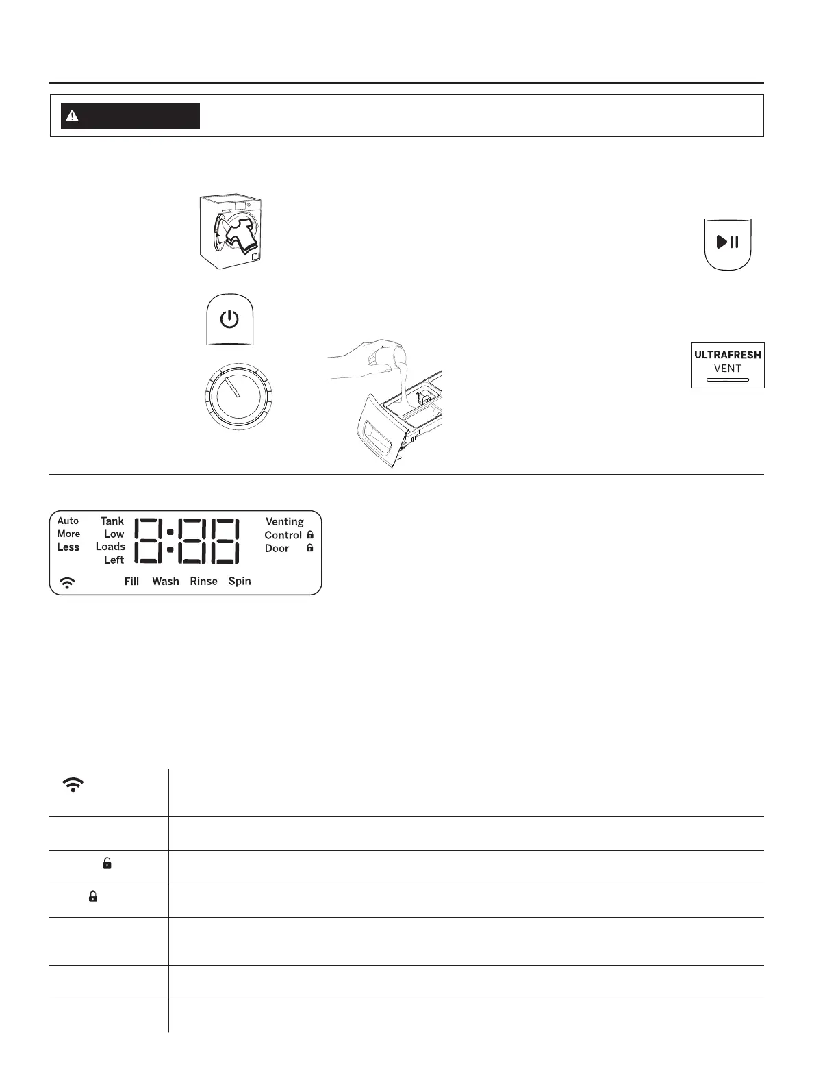 En algunos modelos, rresione para “activar” la pantalla. Si la pantalla está activa, púlselo para poner la lavadora en modo de espera.