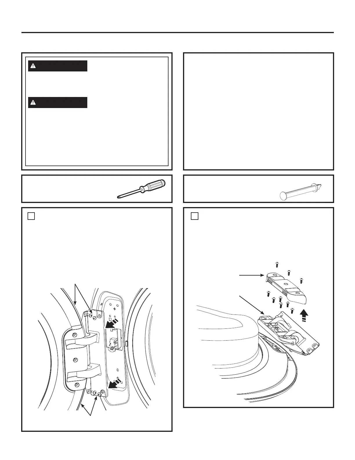 • Mientras sostiene la puerta, retire los 4 tornillos de