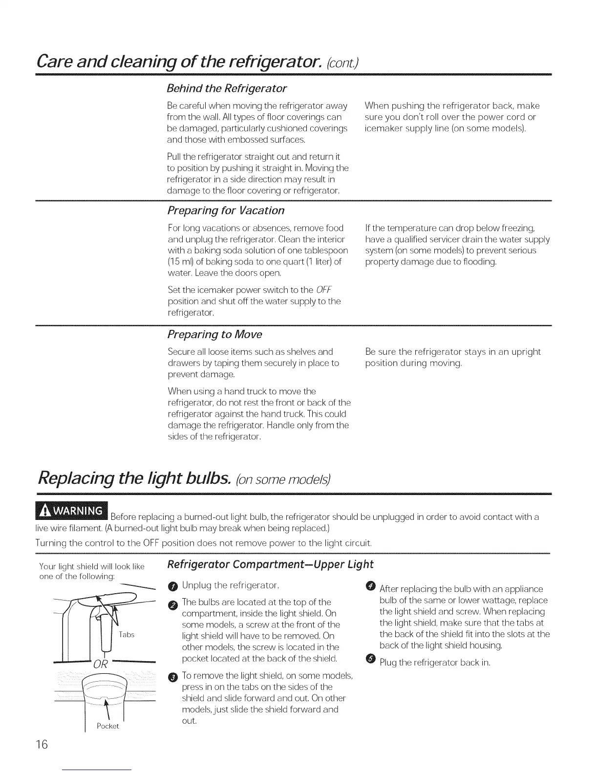Before replacing a burned-out light bulb, the refrigerator should be unplugged in order to avoid contact with a
