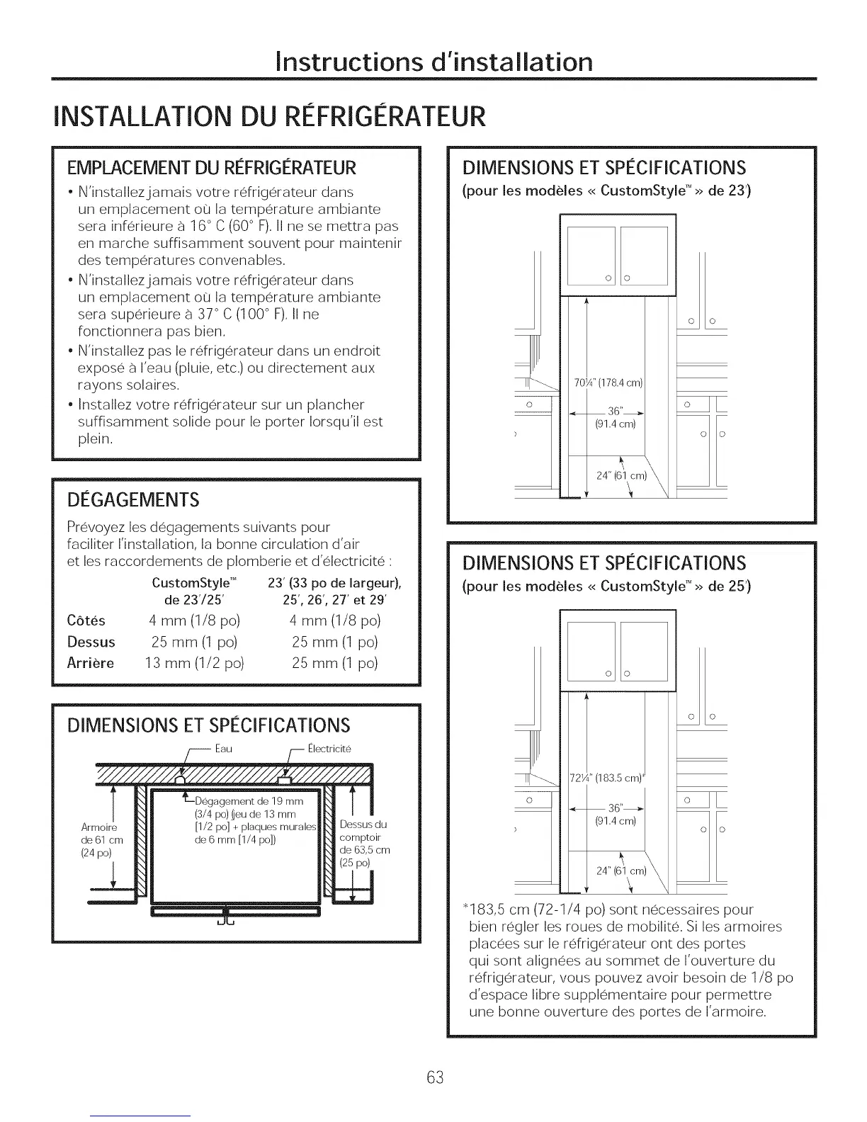 "183,5 cm (72-1/4 po) sont necessaires pour