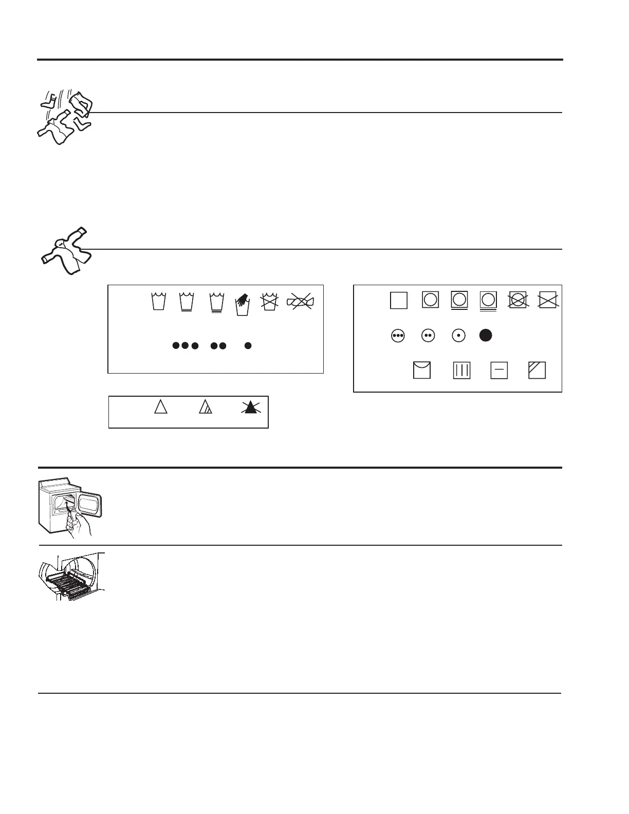 Below are fabric care label “symbols” that affect the clothing you will be laundering.