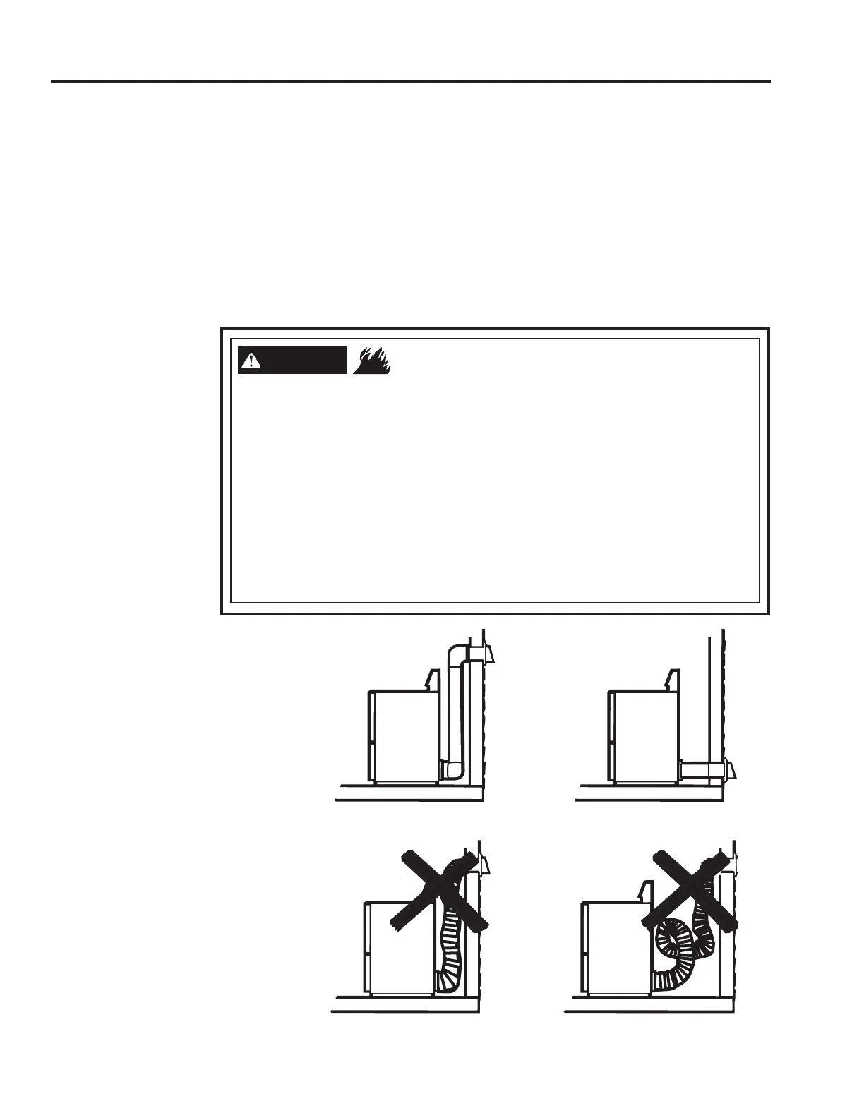 Use only rigid metal 4” diameter ductwork inside the dryer cabinet. Use only rigid metal or