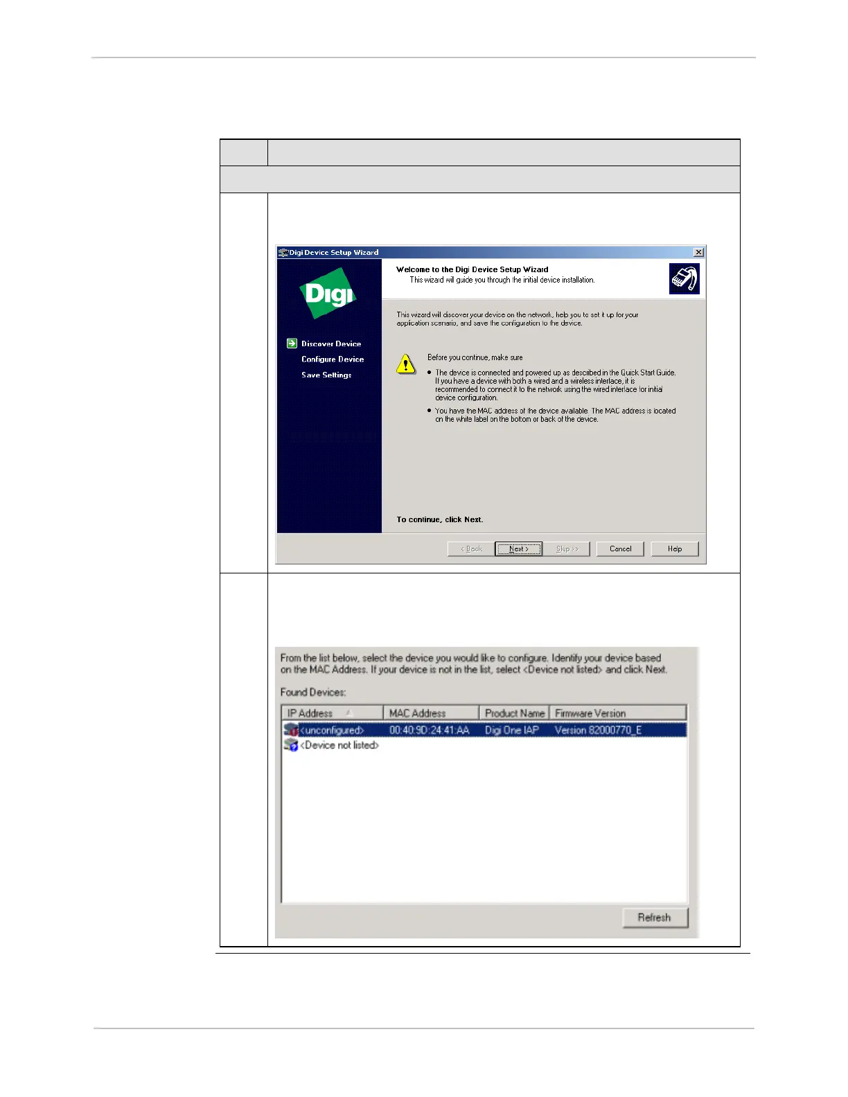 Result: The Setup Wizard discovers Digi devices on the LAN, and