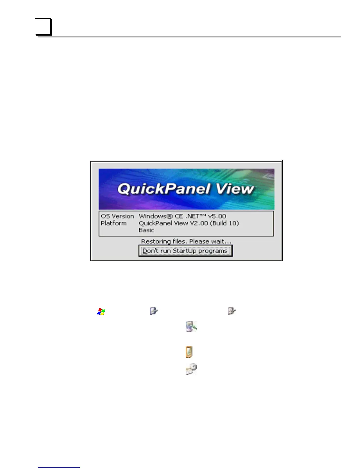 Once power is applied, the QuickPanel View begins initializing. The first