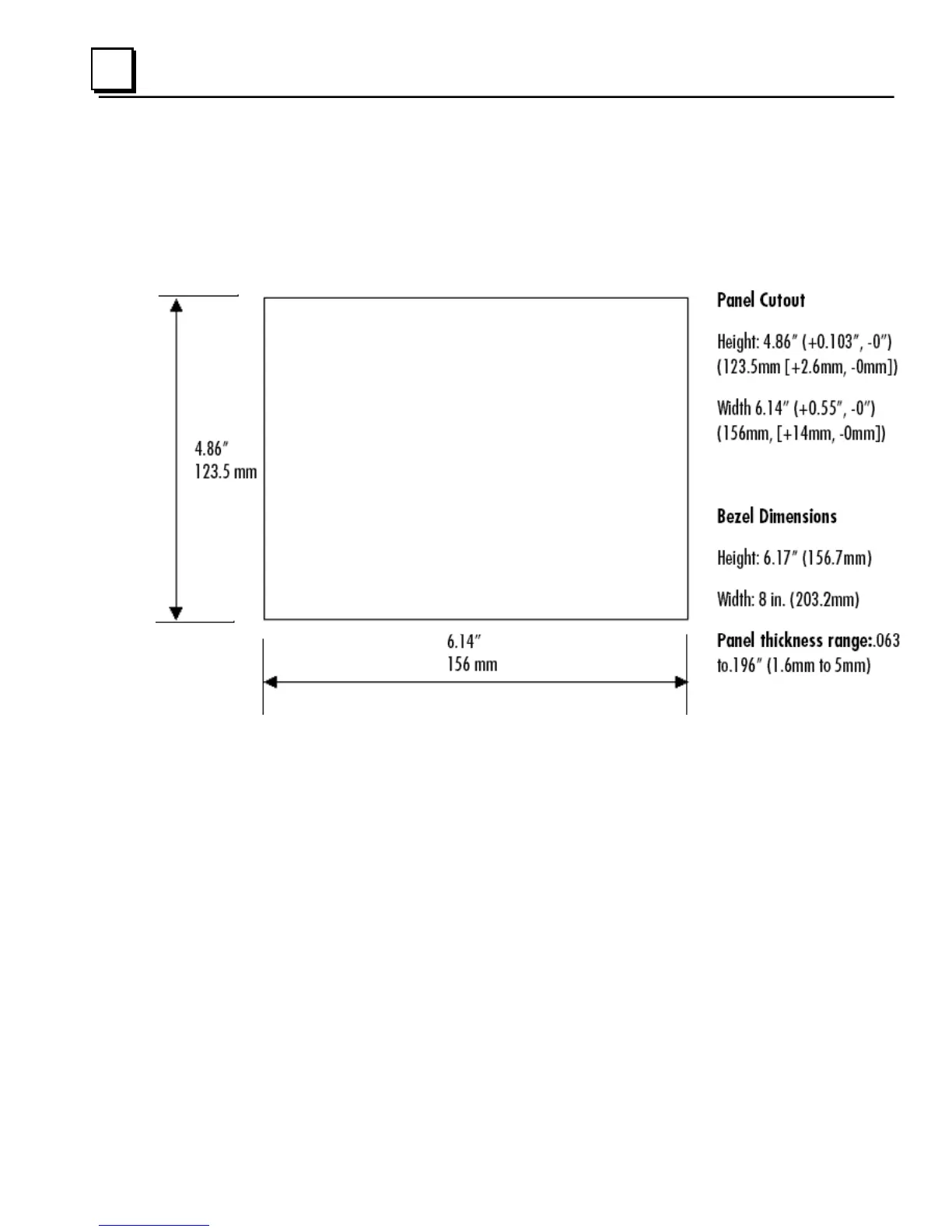 For enclosure mounting, cut an opening in the panel according to the following