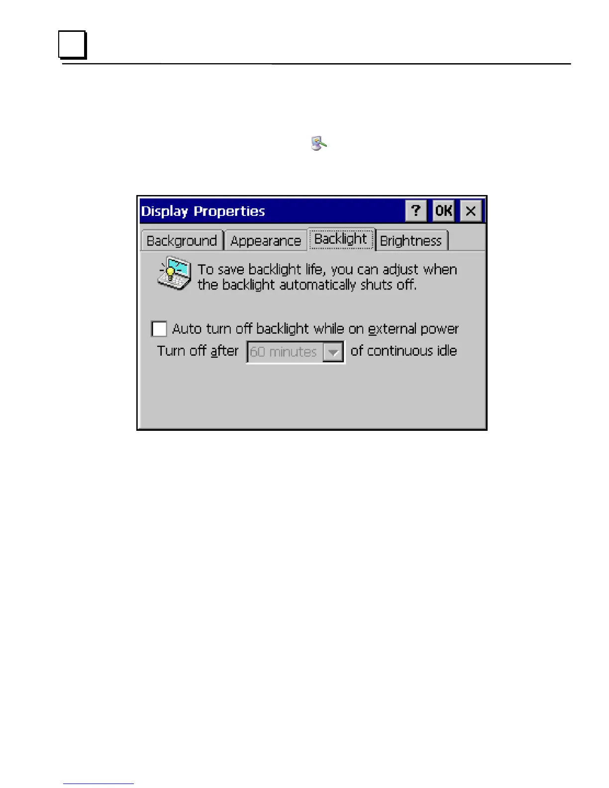 The Backlight dialog box appears.