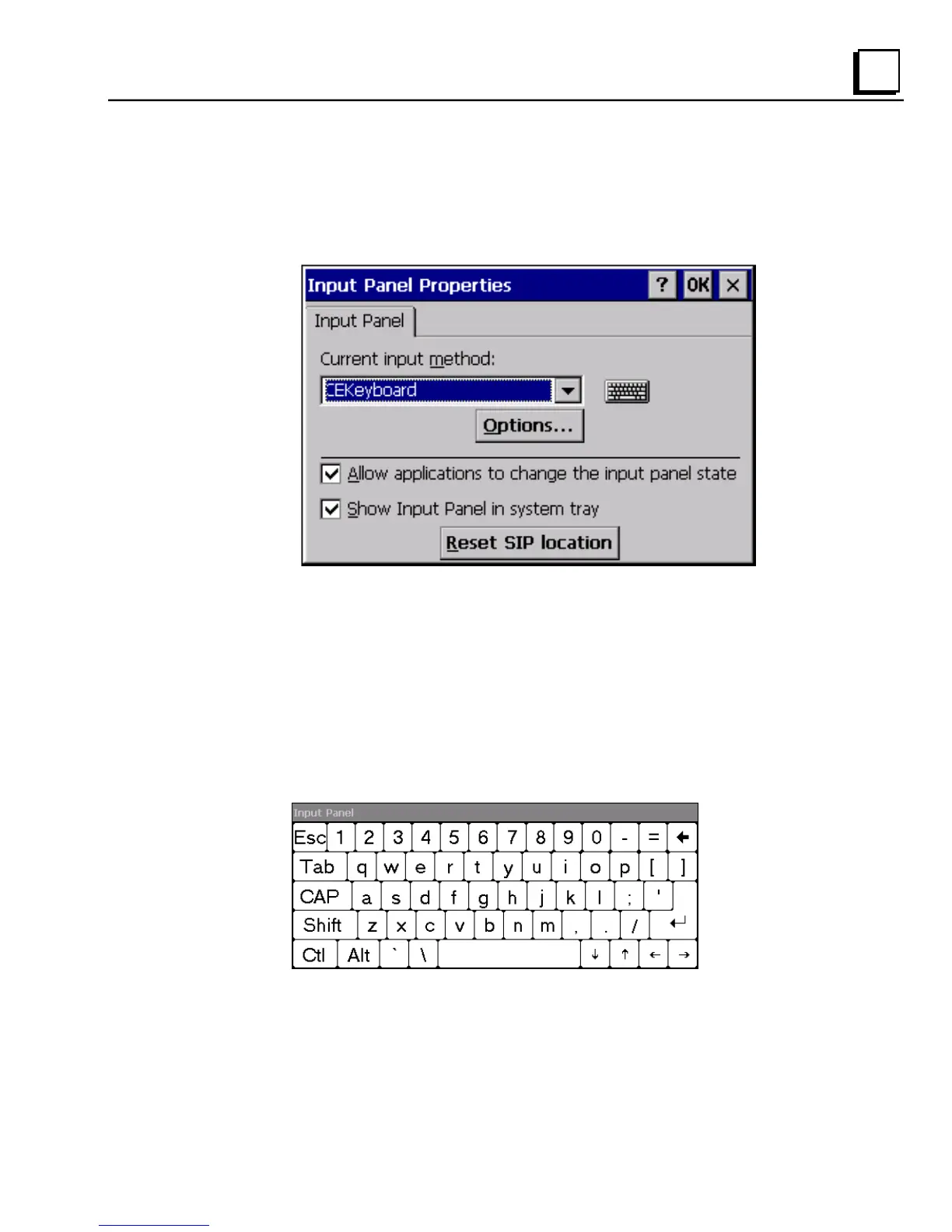 The Soft Input Panel has two basic configurations: Small key and Large key.