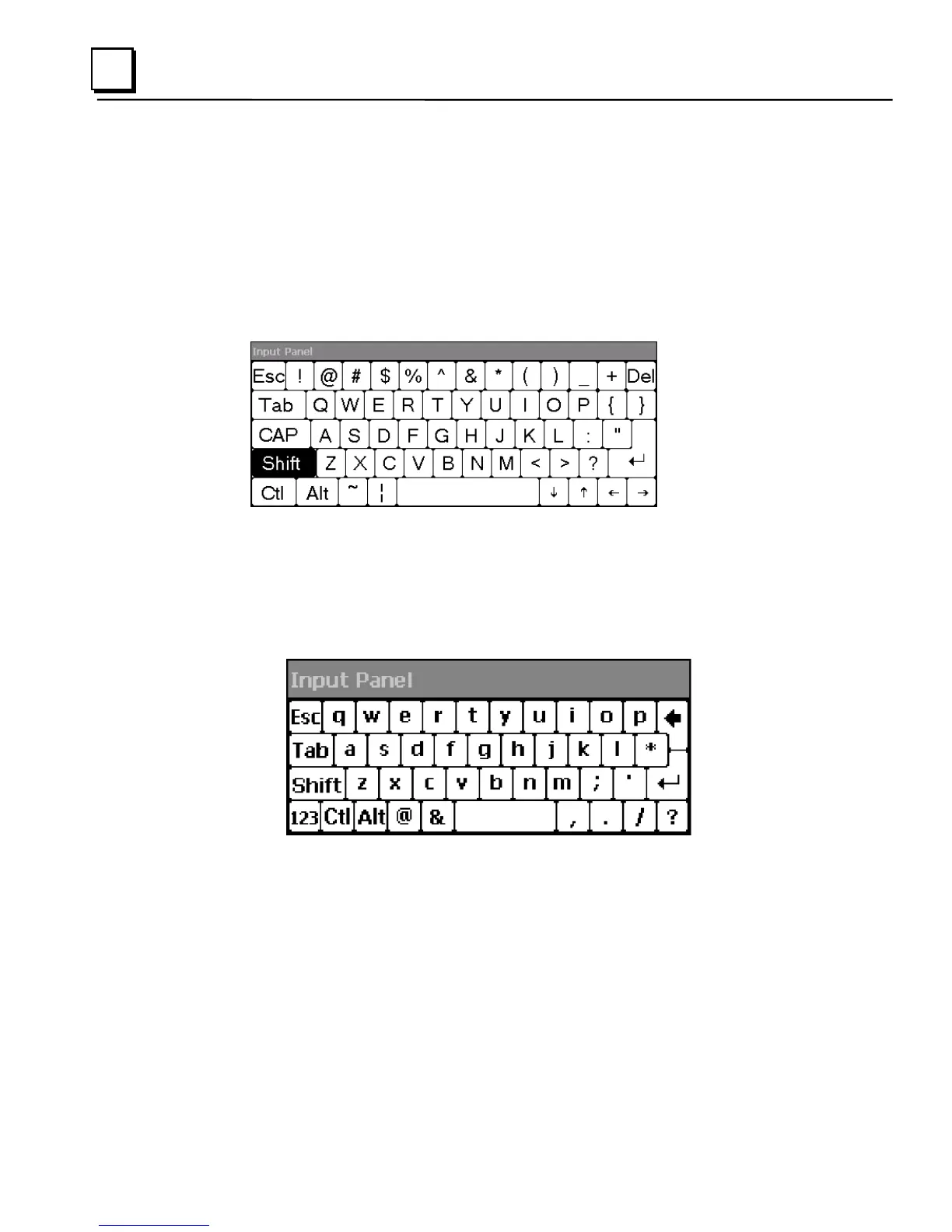 the Soft Input Panel to remain in upper case mode. The CTRL and ALT keys