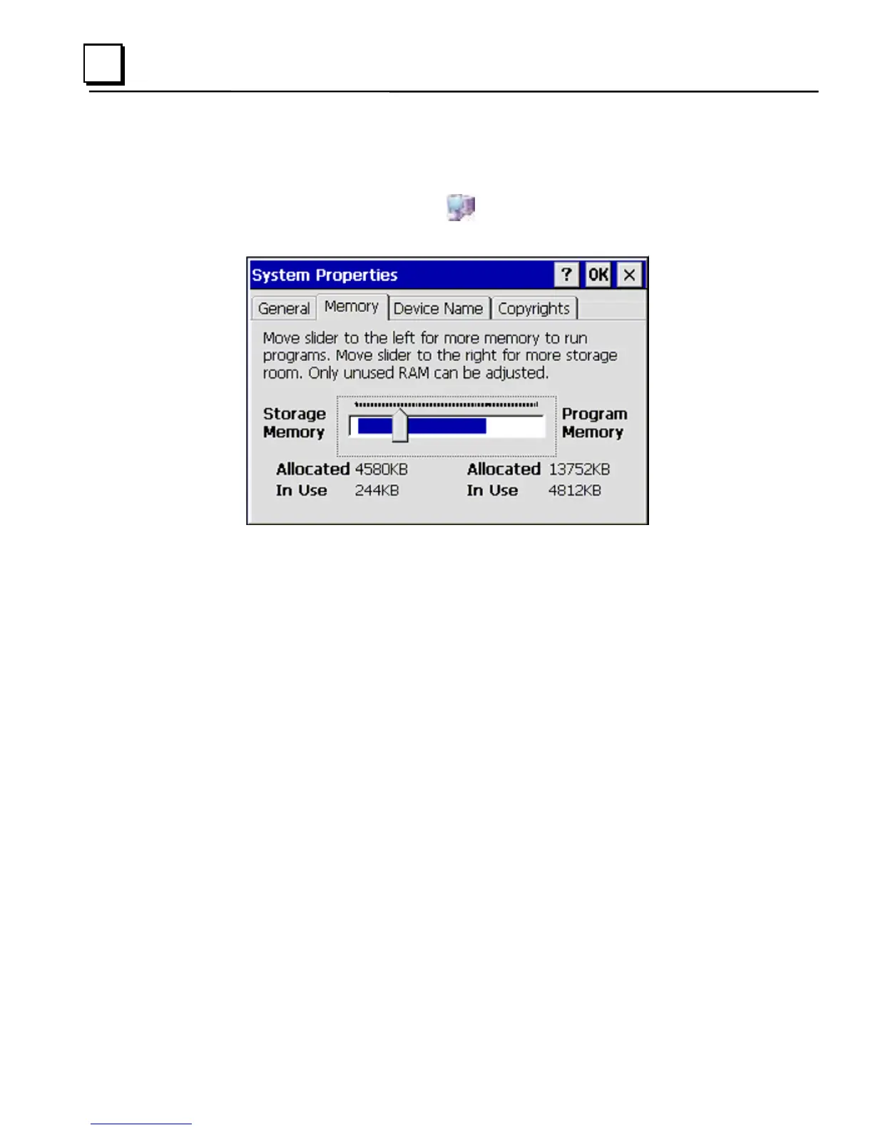 the dialog box. The amount of memory allocated to and used by each